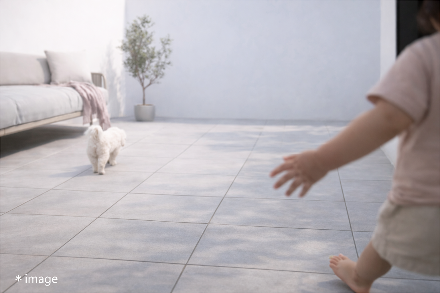 リビング〜ダイニング〜中庭まで視線がつながるから、どこにいても子どもとペットを見守れる。 親としての“安心感”が、自然と生まれる設計です。