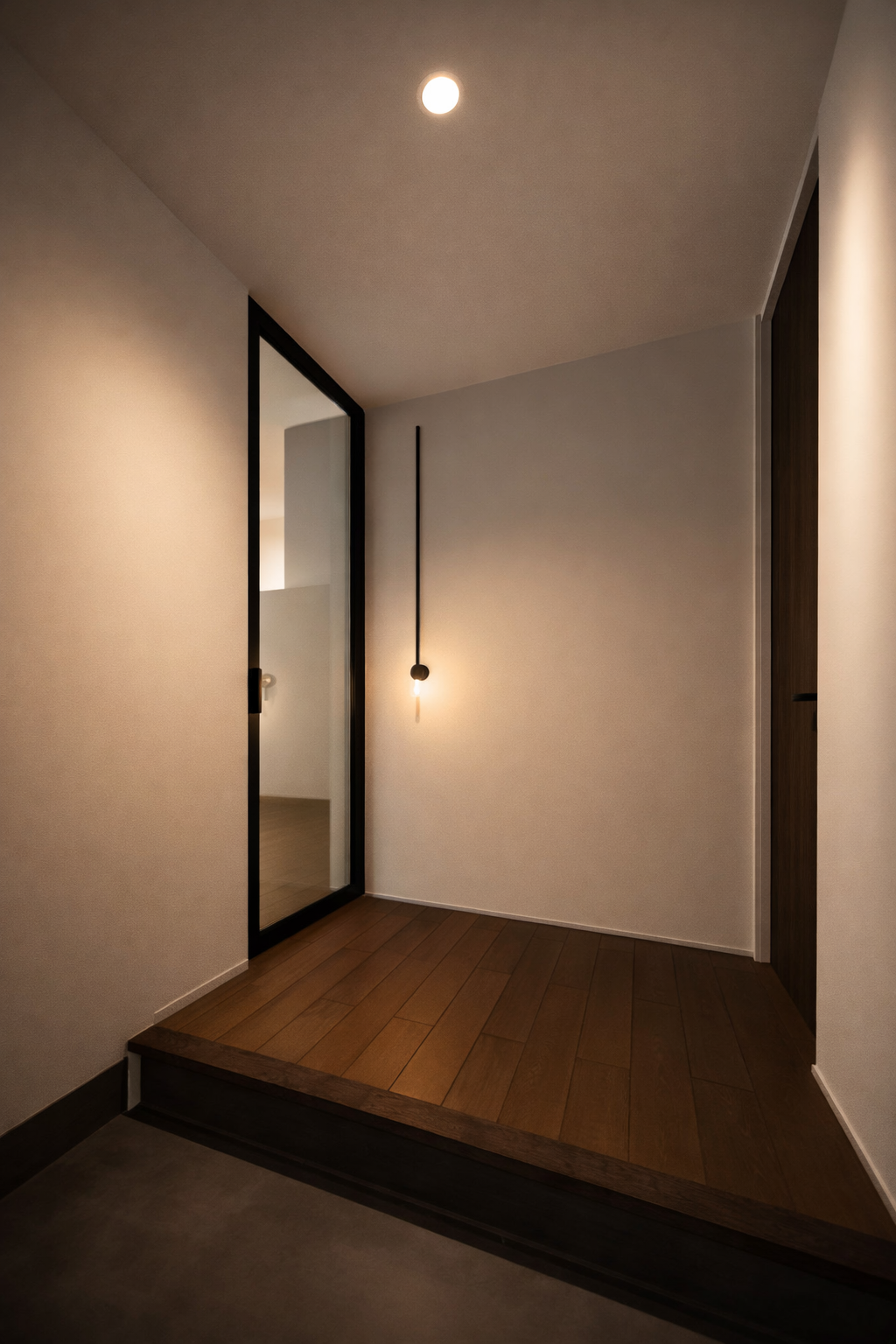 床には無垢材のオルクルーミー、内壁には塗り壁「塗り自慢」を採用。 自然素材ならではのやさしい質感と温もりが、空間全体に落ち着いた空気感を生み出します。 ホテルライクなデザインの中に、素材のぬくもりを感じられる住まいです。