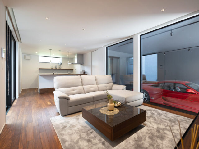 #8070公園の木々を空間に取り込むピクチャーウィンドウのある家【前橋市】