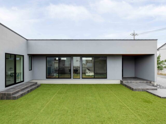#8092敷地形状を最大限に活かした中庭テラスを囲む平屋の家【前橋市】