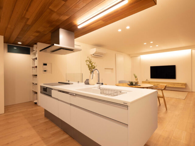 使い勝手やお手入れなど細かい点も考慮しつつ、優しい色味でまとめたくつろぎのインテリア。