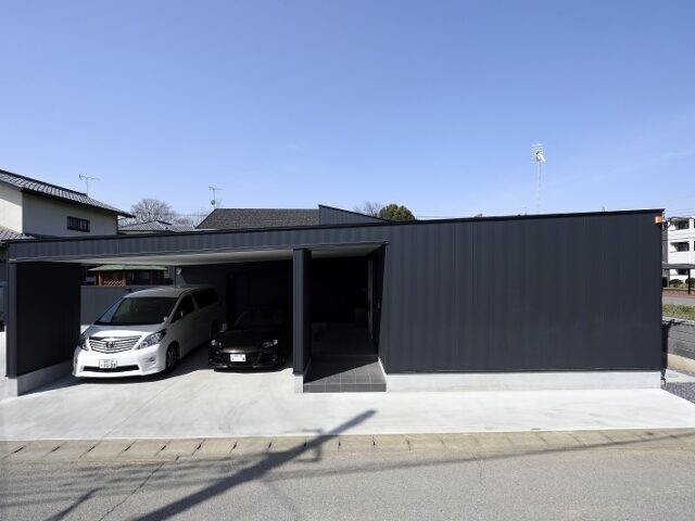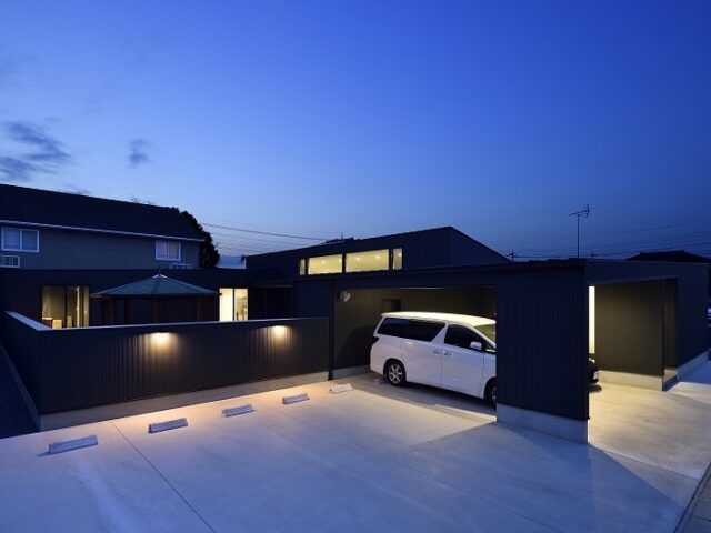 170坪の敷地に、大きな中庭を囲むカーポート付きの平屋