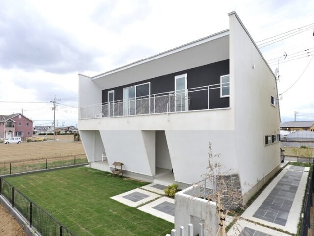 外壁をナナメにデザインした個性ある佇まい。