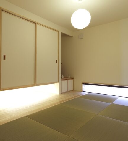LDKひとつながりの中にも段差のあるリビングは、空間に変化をもたらす。