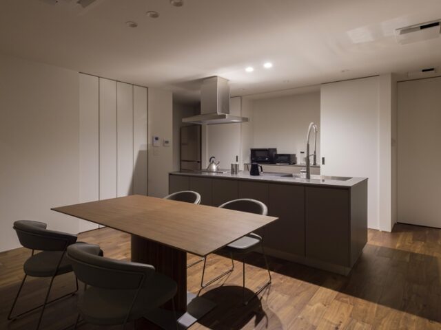 夜は灯りを落として、間接照明の落ち着いた空間に癒される。