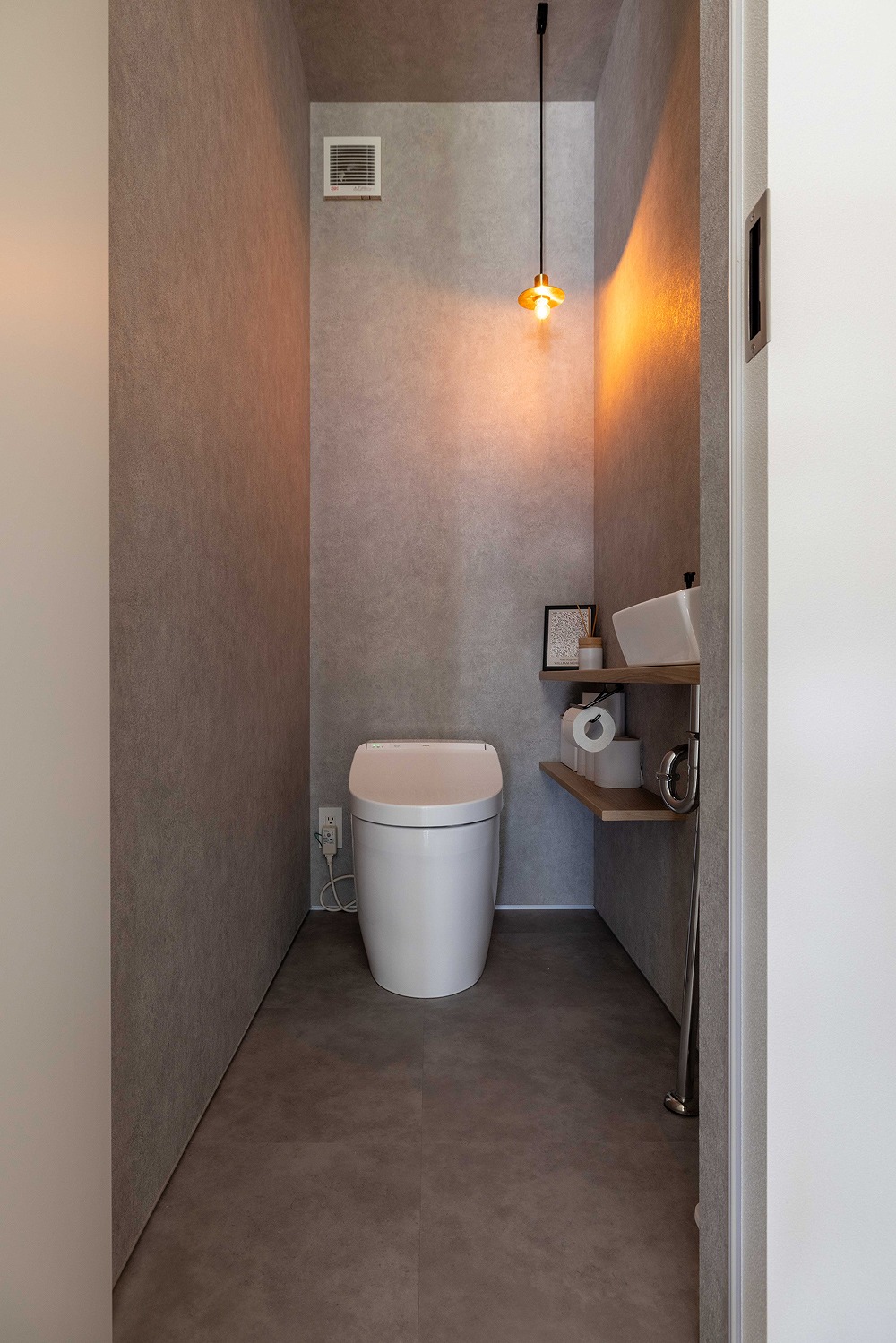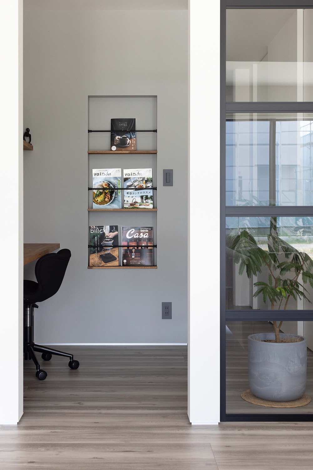 外観は無機質なグレーに温かみのある木目をプラスしたシンプルな箱型。