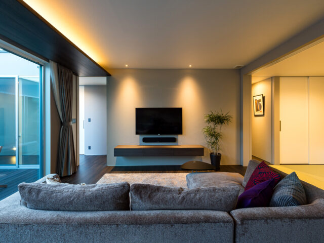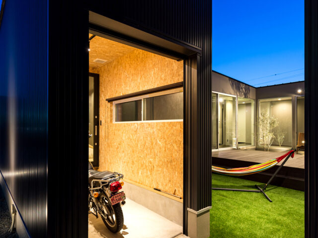 周囲の視線を気にせず、家族団欒できる中庭空間