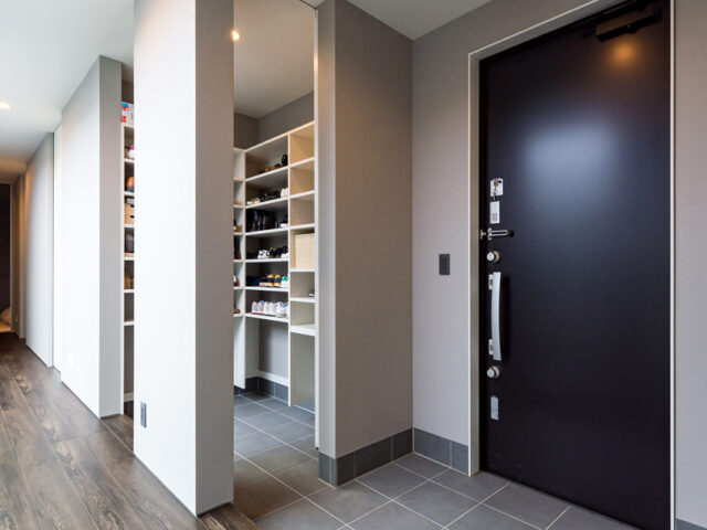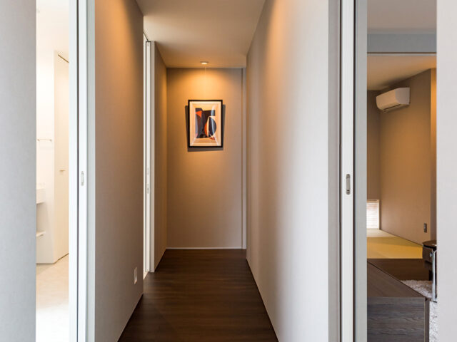 右側はプライベートスペース、左側はパブリックスペースと生活エリアを分岐した間取り