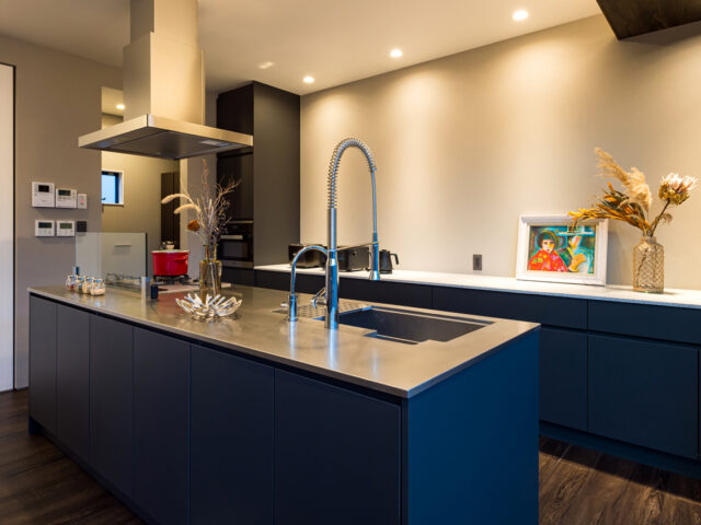シンプルなフォルムに、ガルバリウムのすっきりとしたラインが映える