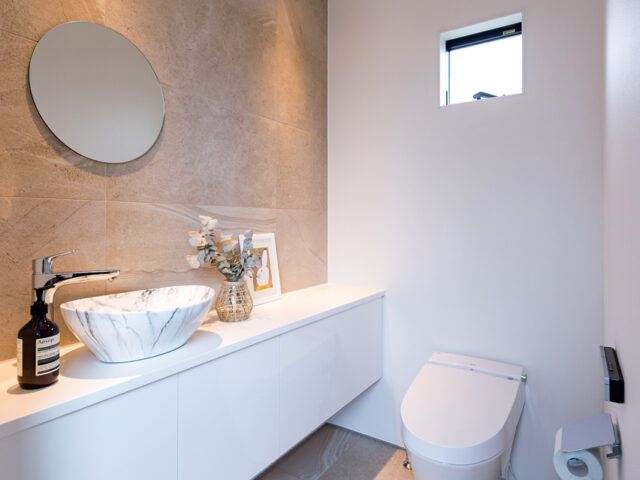 ウェーブ柄の美しいタイルが上品な印象を与える