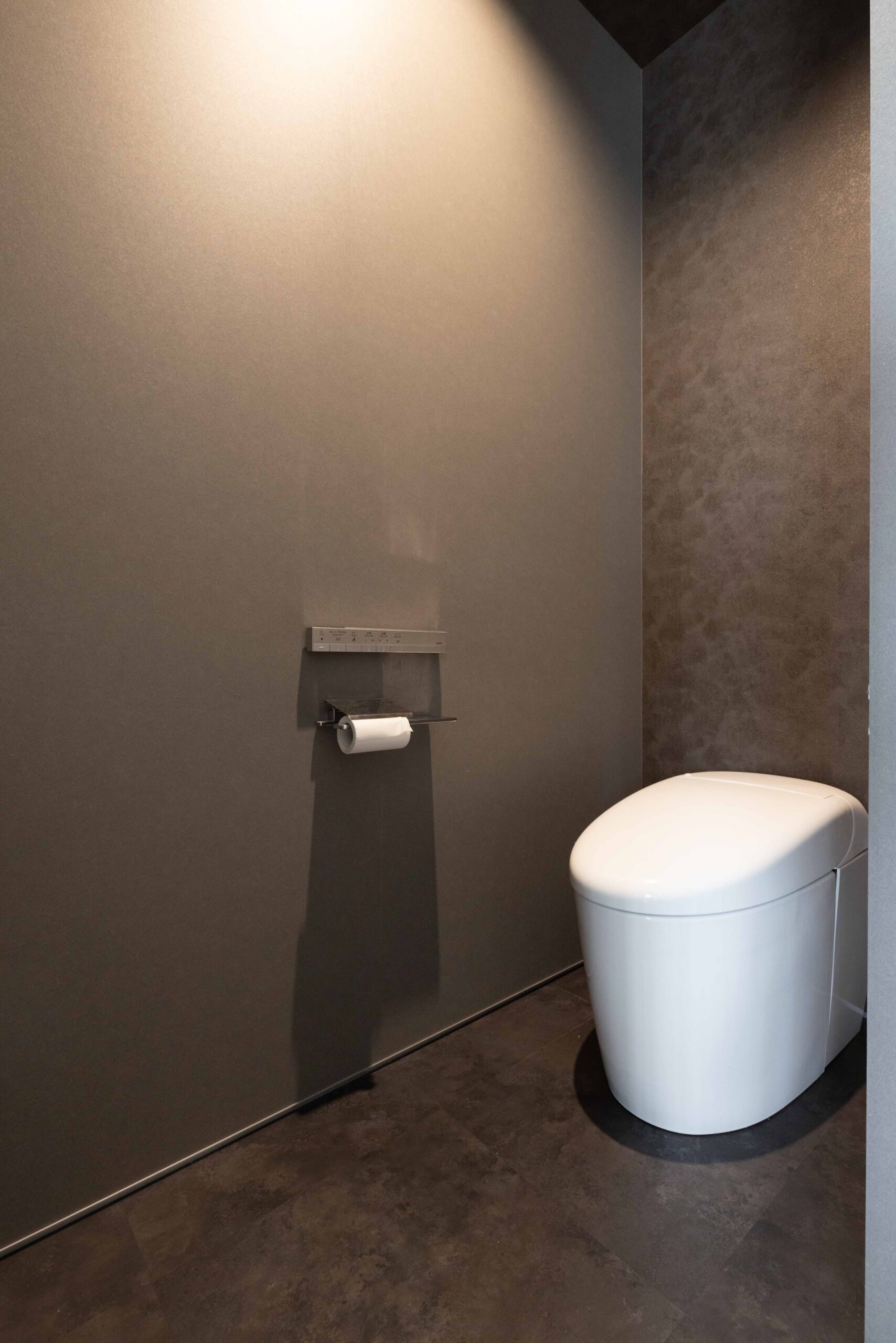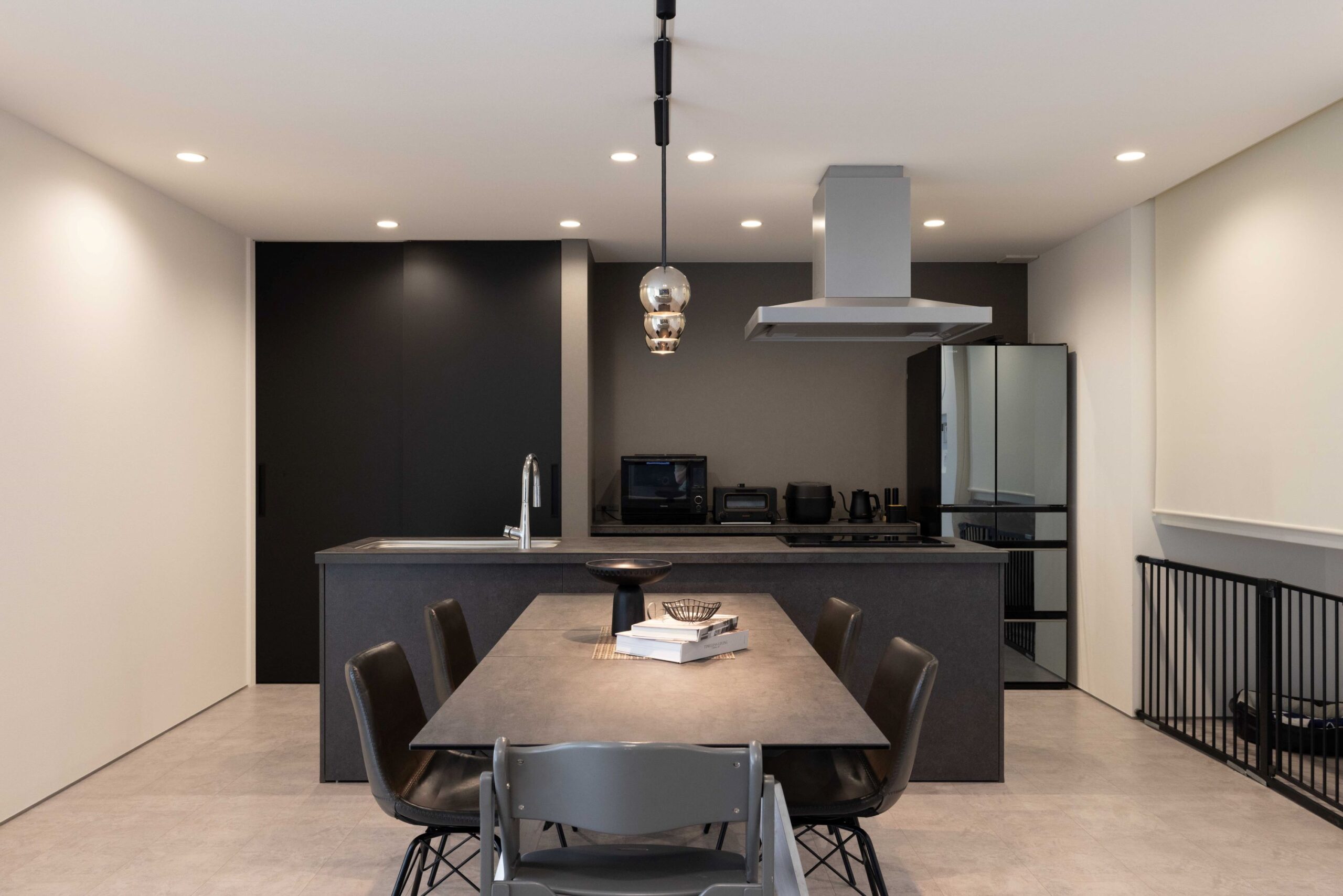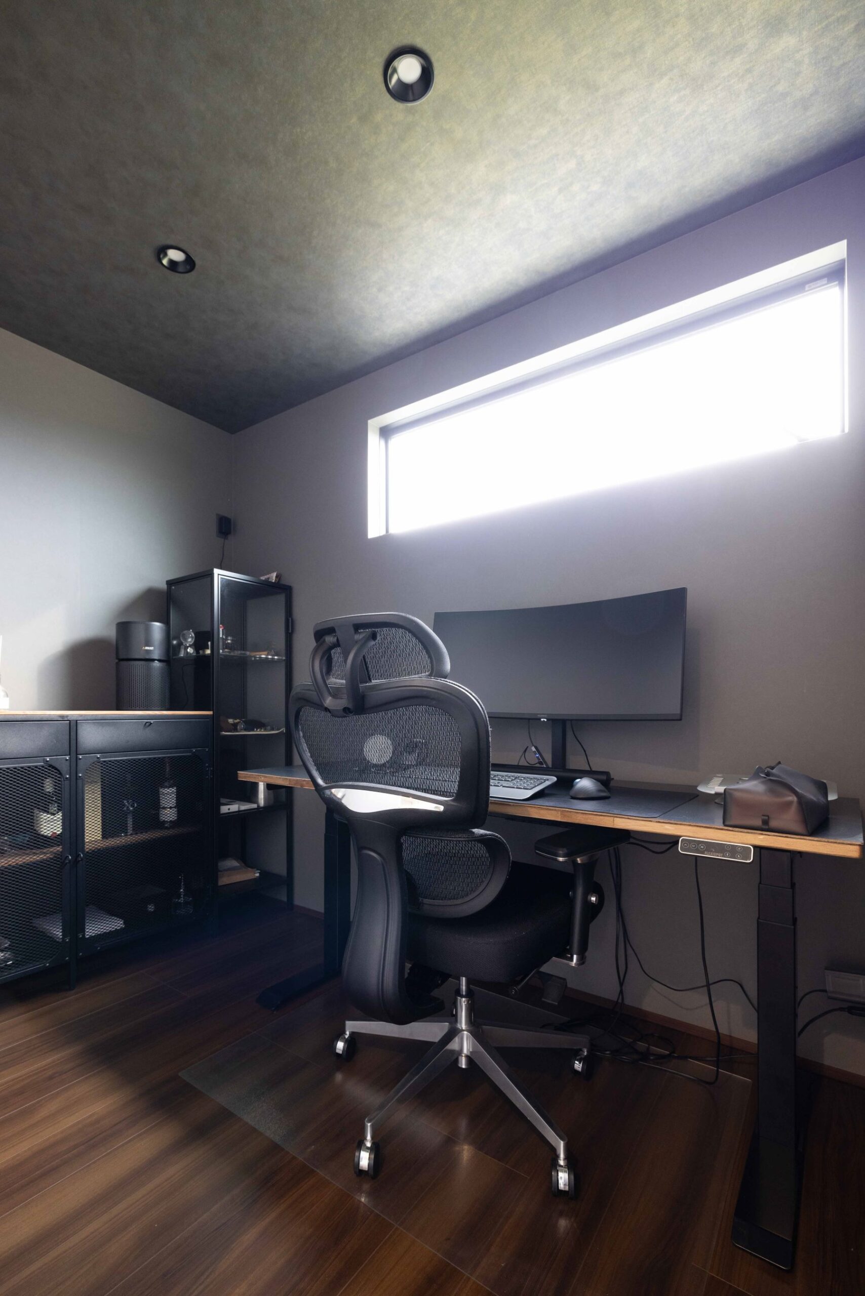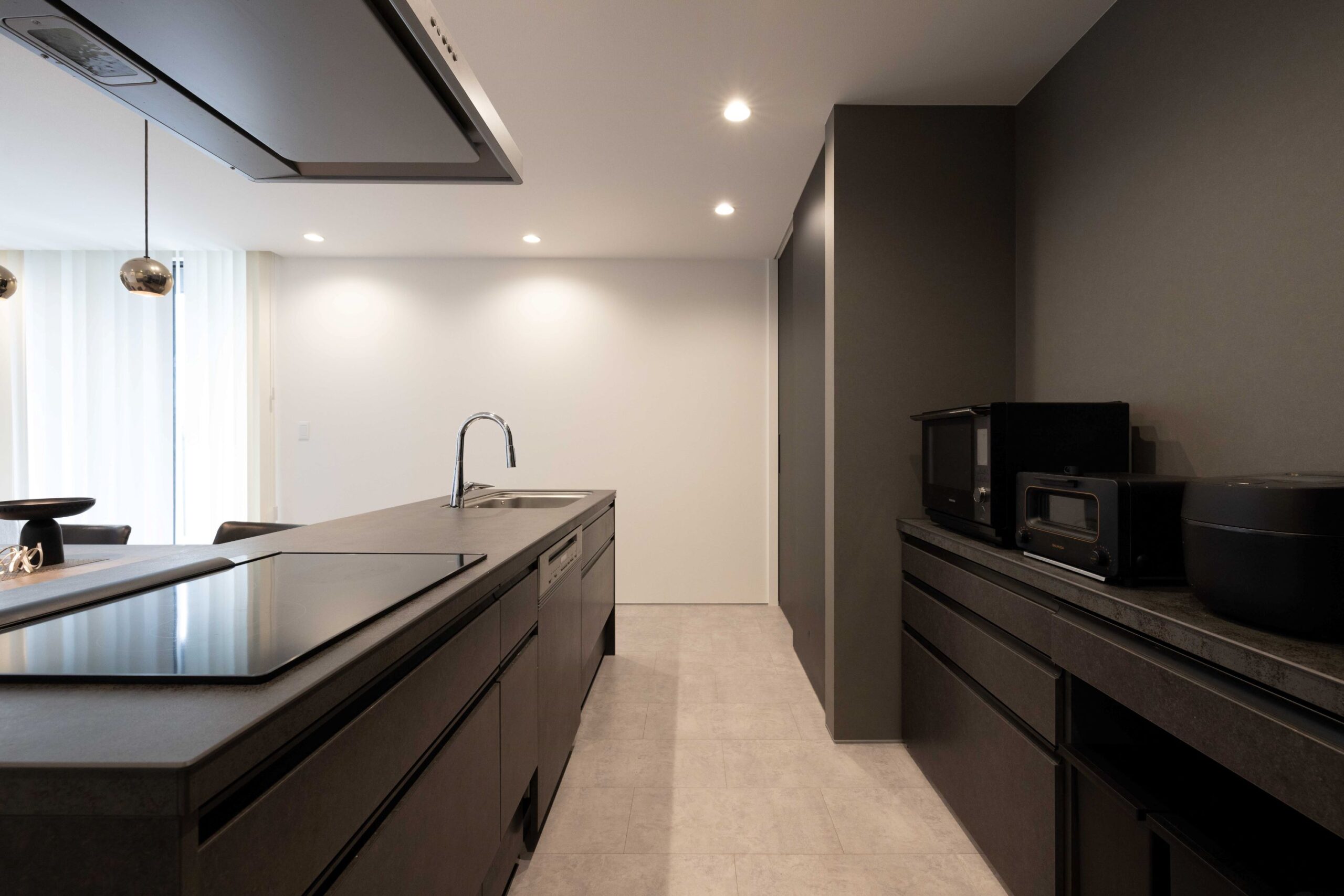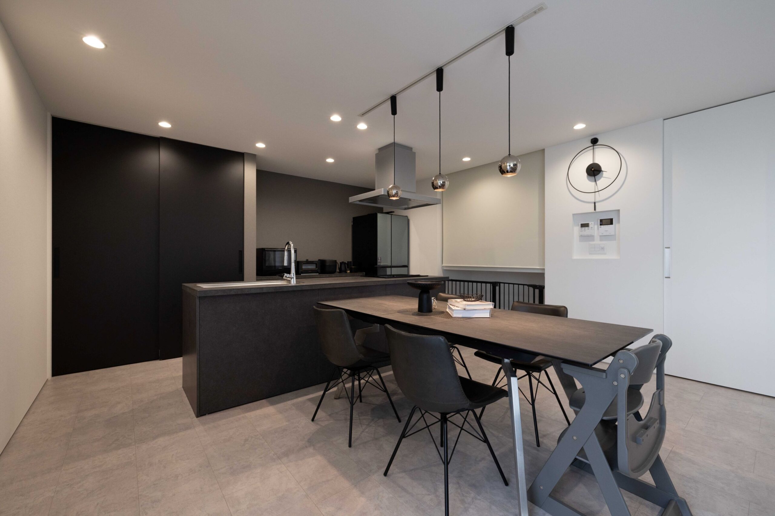 外観も内観もダークグレーを中心としたモノトーンカラーで統一。