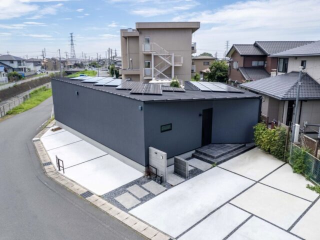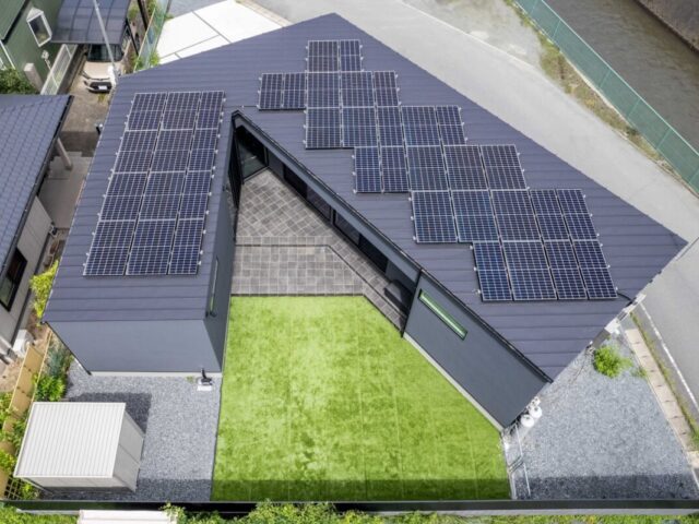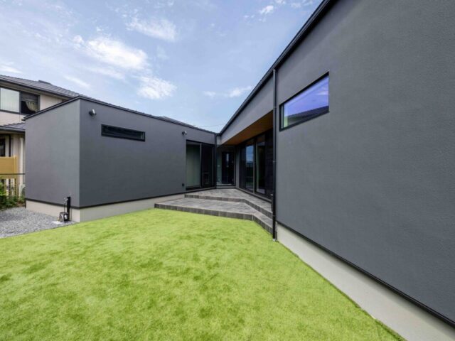 敷地形状を最大限に活かした中庭テラスを囲む平屋の家【前橋市】