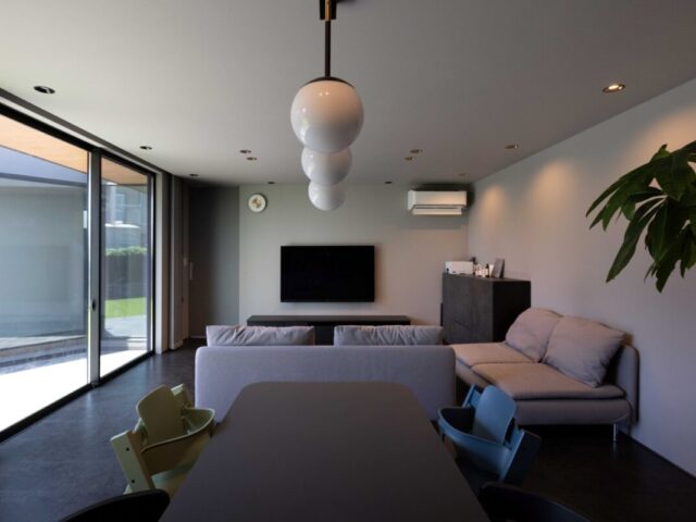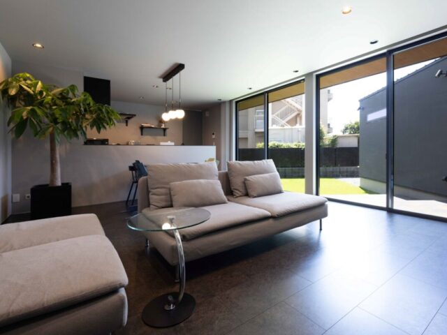 中庭テラスに面して大きな開口部を設けた明るいLDKと中庭で