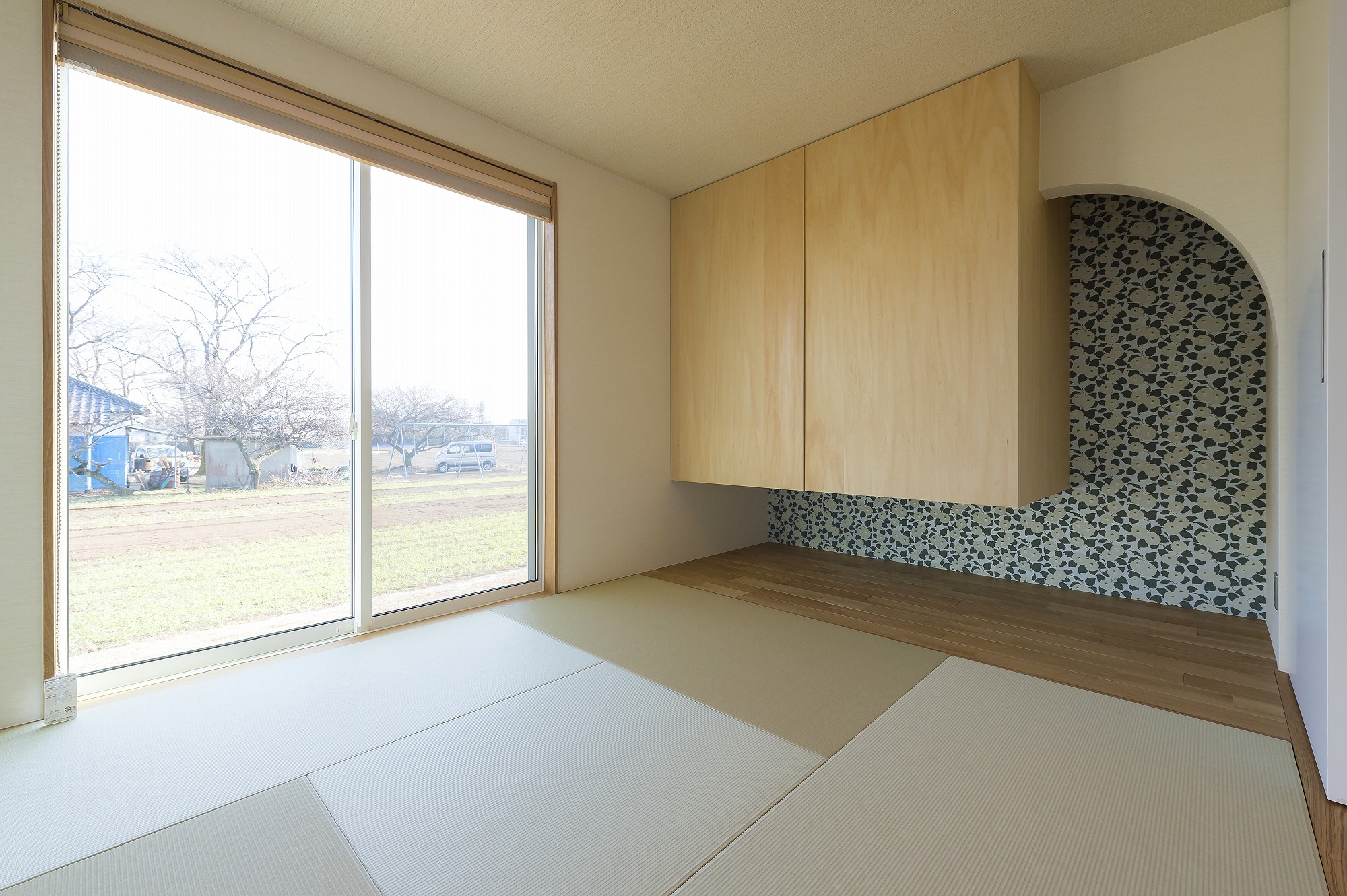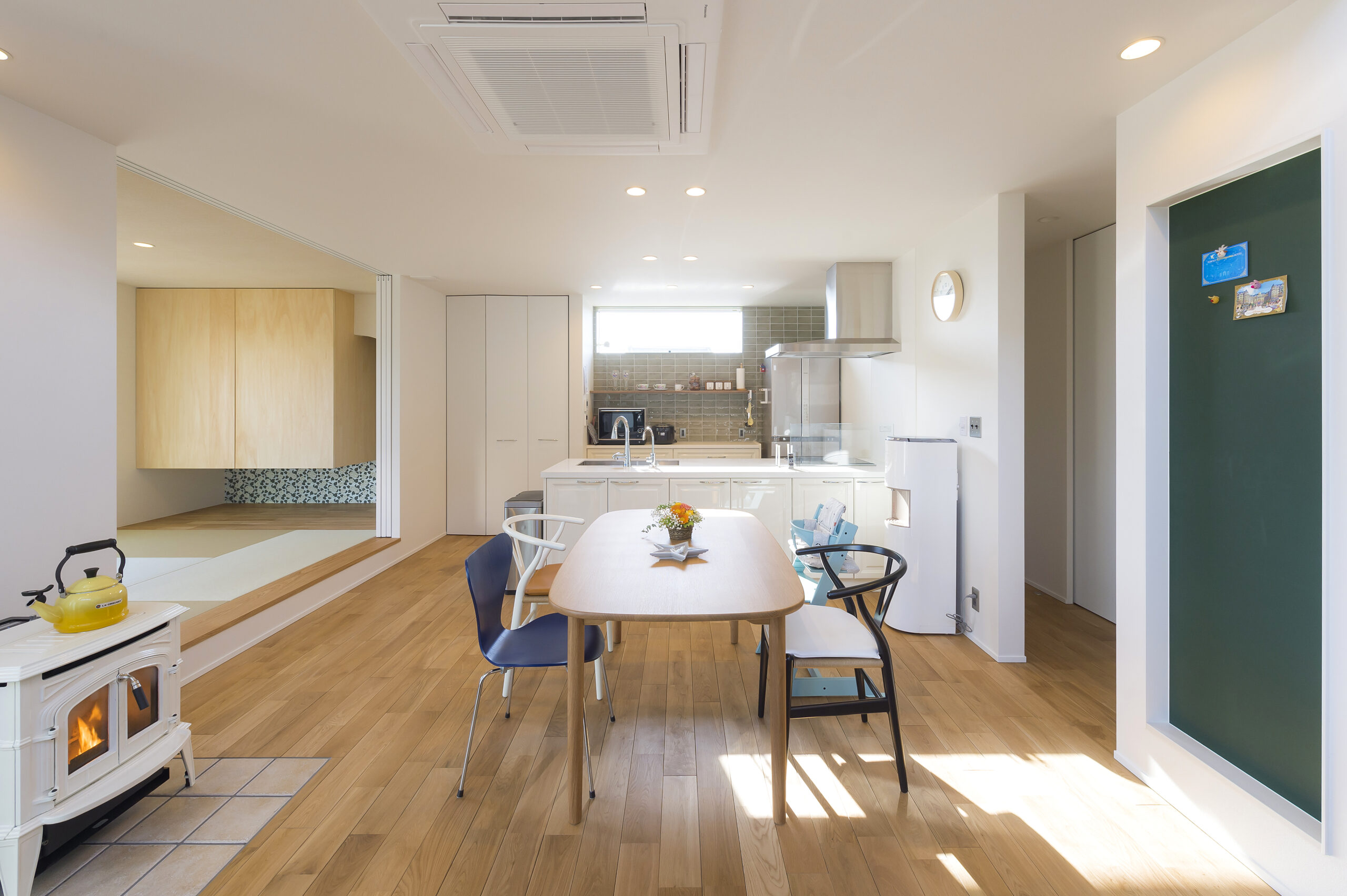 リビングは南面の開口と、上部に設けた窓で一日中光が差し込む明るい空間となっている。