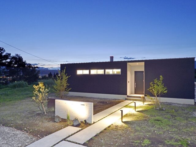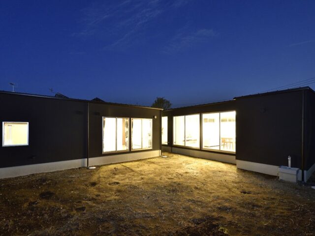 窓のあり方を考え、北側の眺望を活かしたL型に開いた「空と緑を感じる平屋デザイン」。
