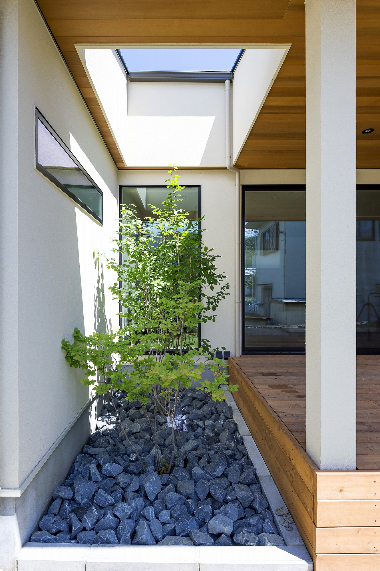 落ち着きのある佇まいが印象的な寄棟屋根の外観。