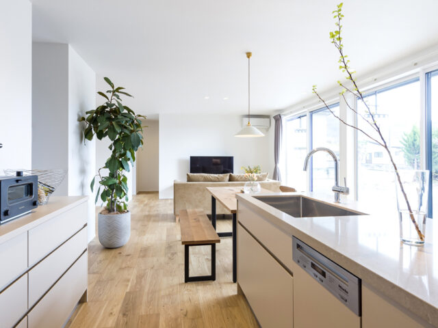LDKをゆったり広く、キッチンを中心とした家事動線