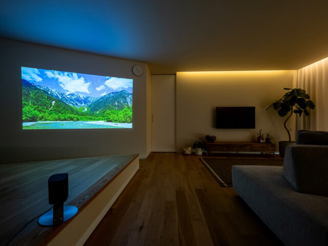 小上がりの畳コーナーではゴロンと横になって、プロジェクターに映した映画を楽しむことができます。