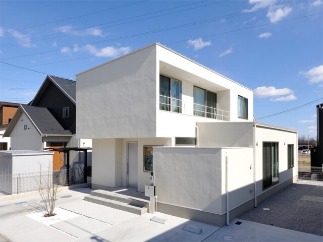 白いハコが織り重なるように組み合わされた立体的なフォルム。