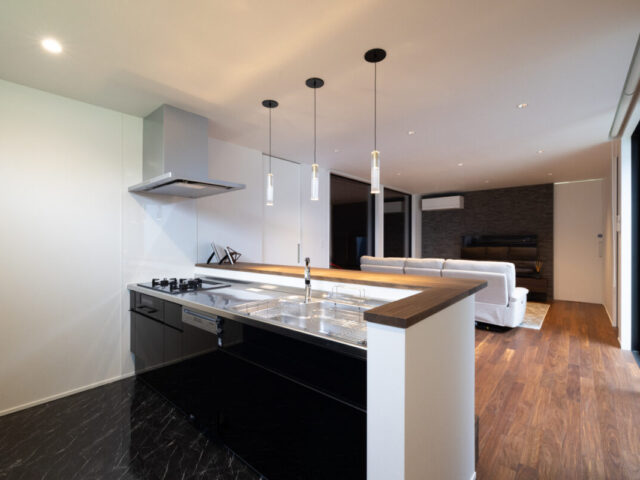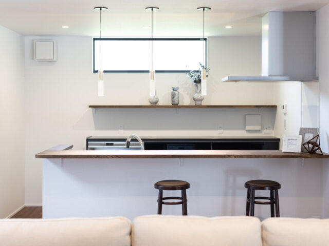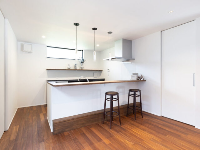 足置きステップを設け、機能性と美しさを兼ね備えたカウンタースペースに