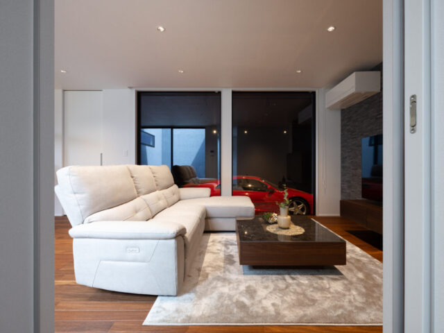 車好きなオーナー様にとって夢のような空間であり、愛車を眺めながら過ごす時間が日常を贅沢にしてくれます。