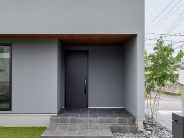 外観はレッドシダー×グレーでナチュラルモダンに。