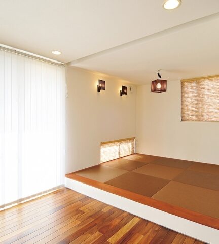 吹き抜けや和室、リビング空間などの要素をうまく配置しメリハリのある空間に。
