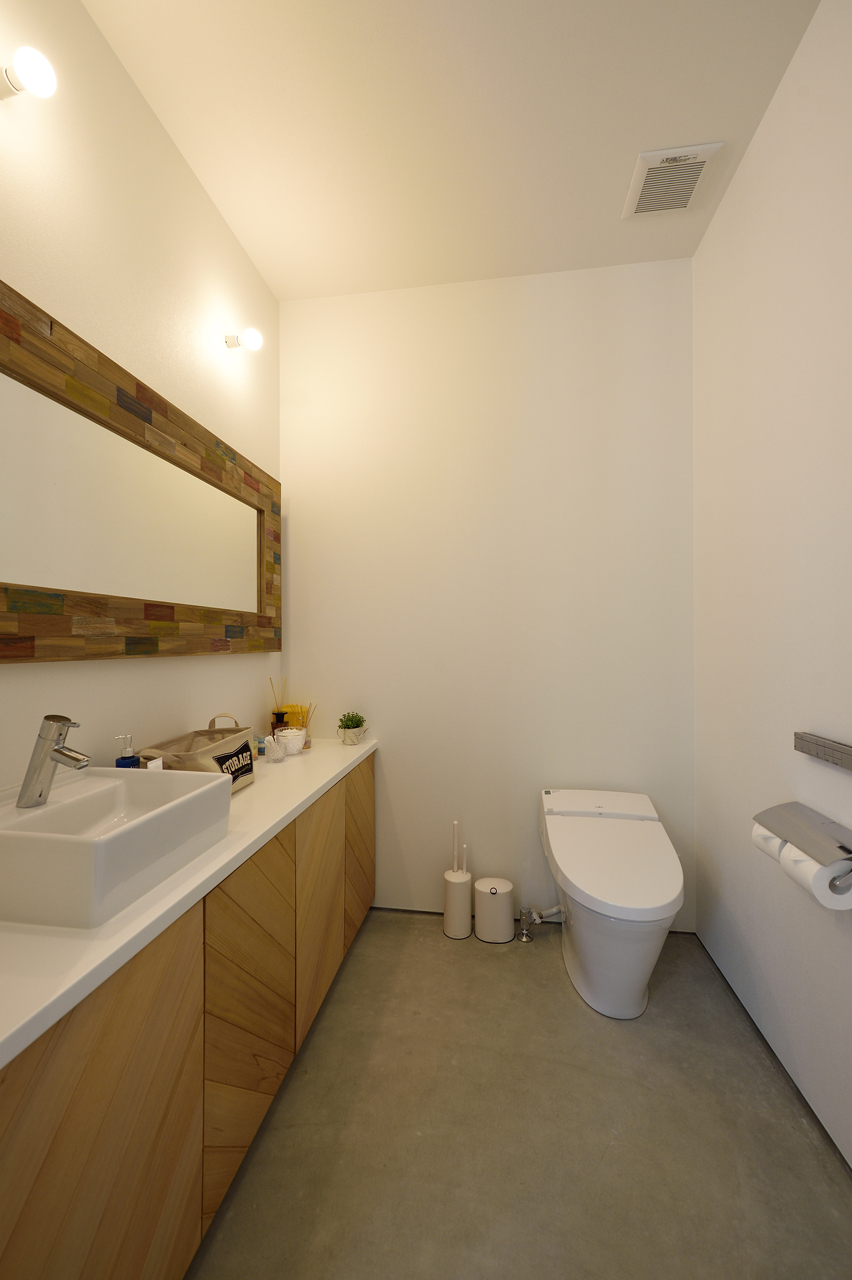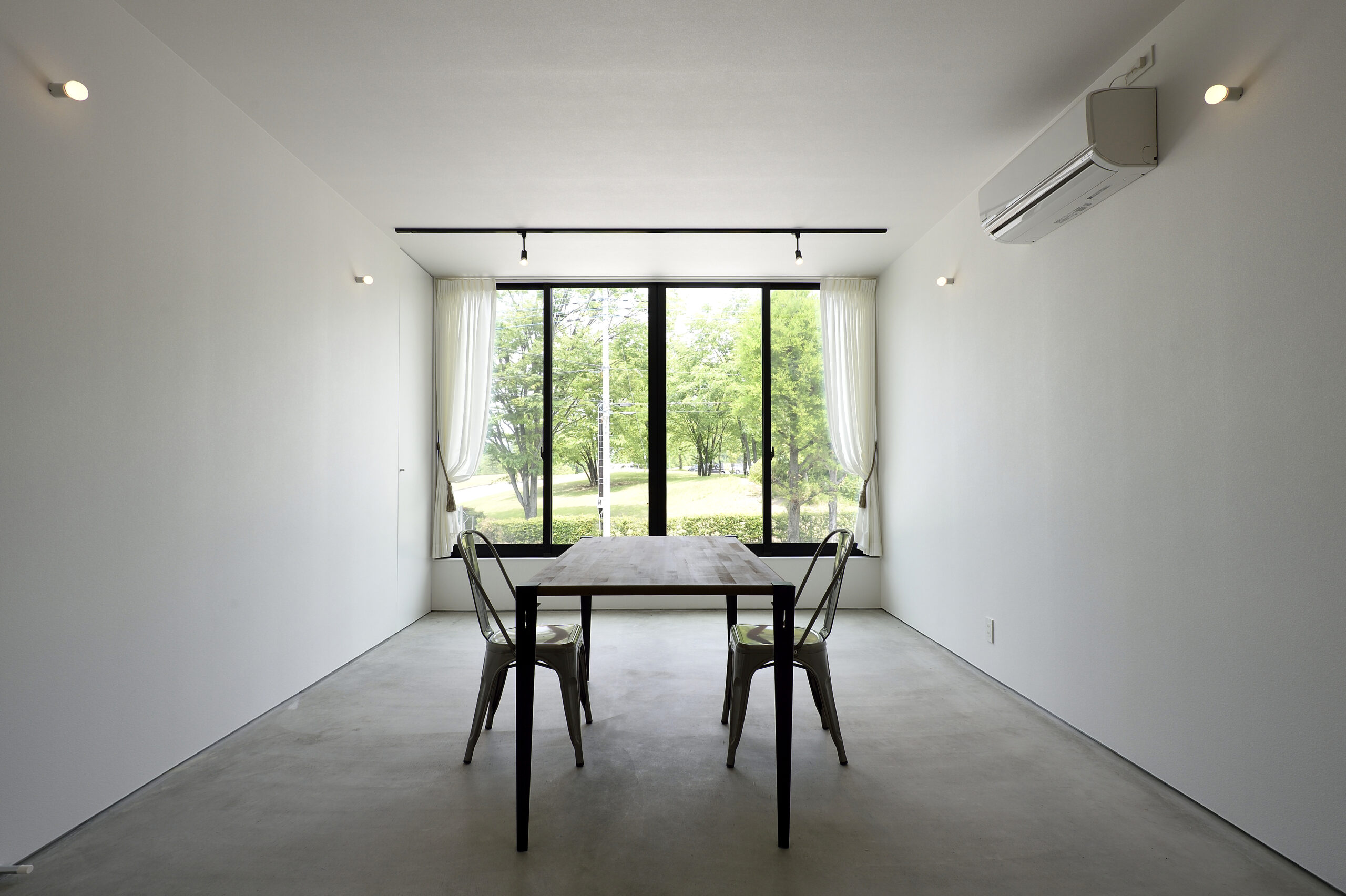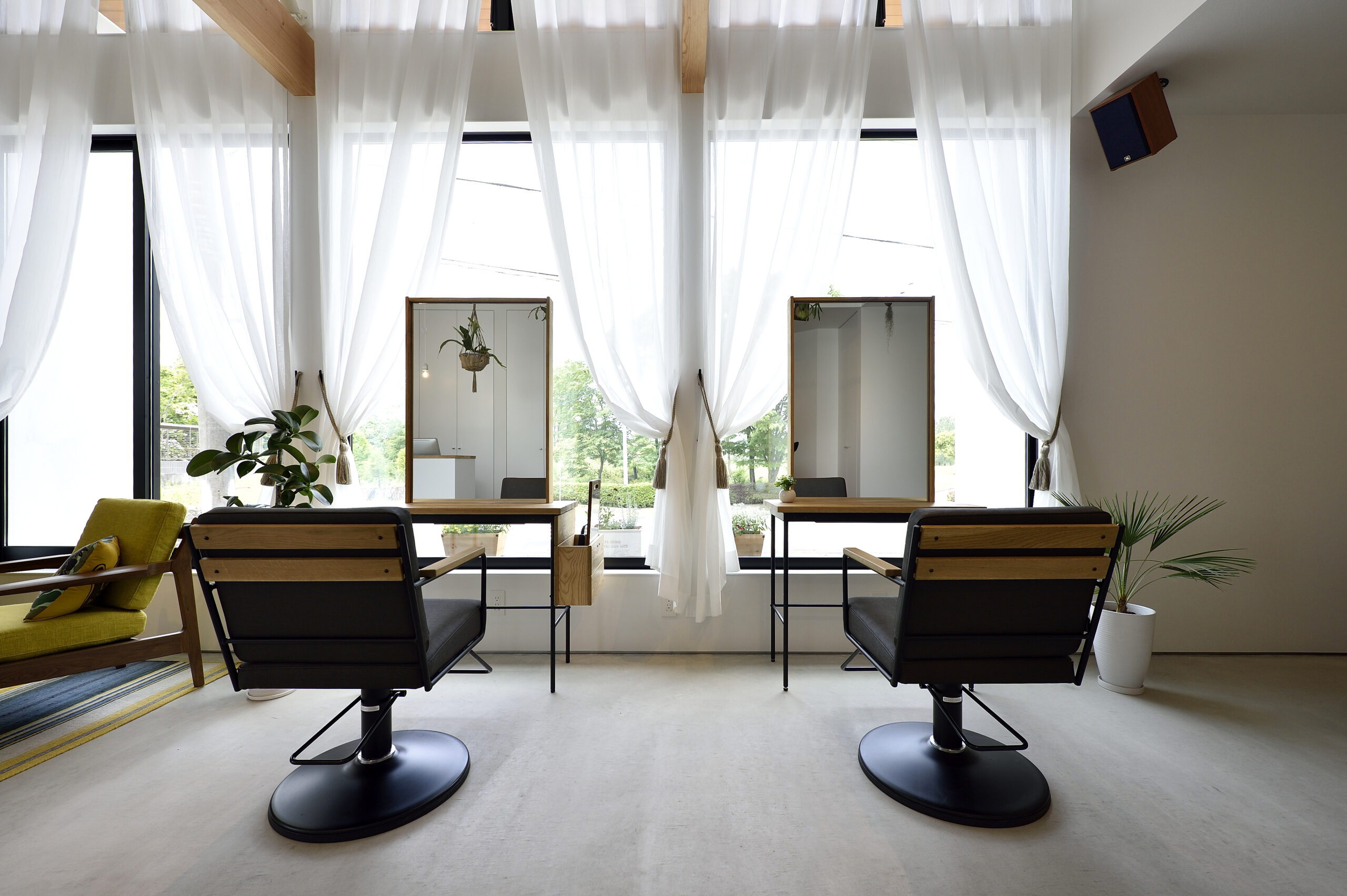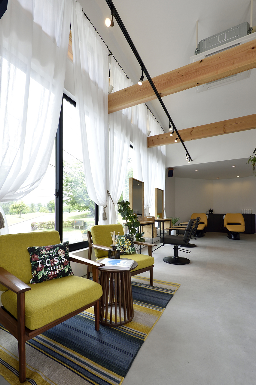 大胆に設置したnaturalな質感のレースカーテンが柔らかさを加える。