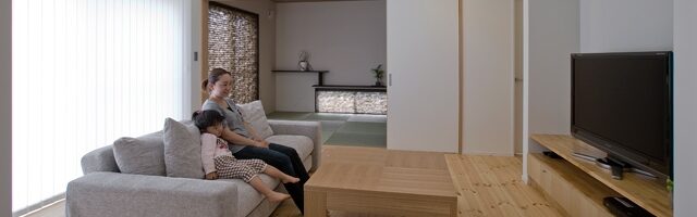 また、内部は、小さい子供の成長を見守ることの できる空間構成になっているので、どこにいても 家族の気配を感じることができる。