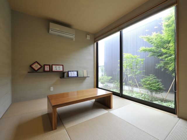"kuboni”である坪庭に面した和室。リビングに面していないので、客間として活用できます。
