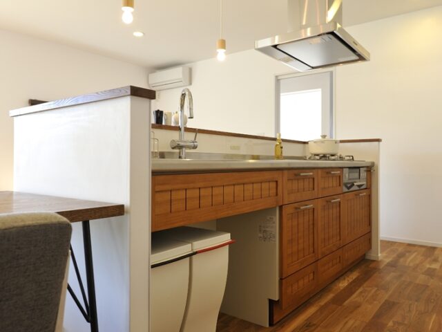 カフェらしく、可愛くデザインされたキッチン。手元を隠してスッキリと見せています。