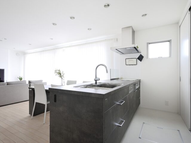 ひとつながりのLDKでは、こだわりのキッチンがポイントに。