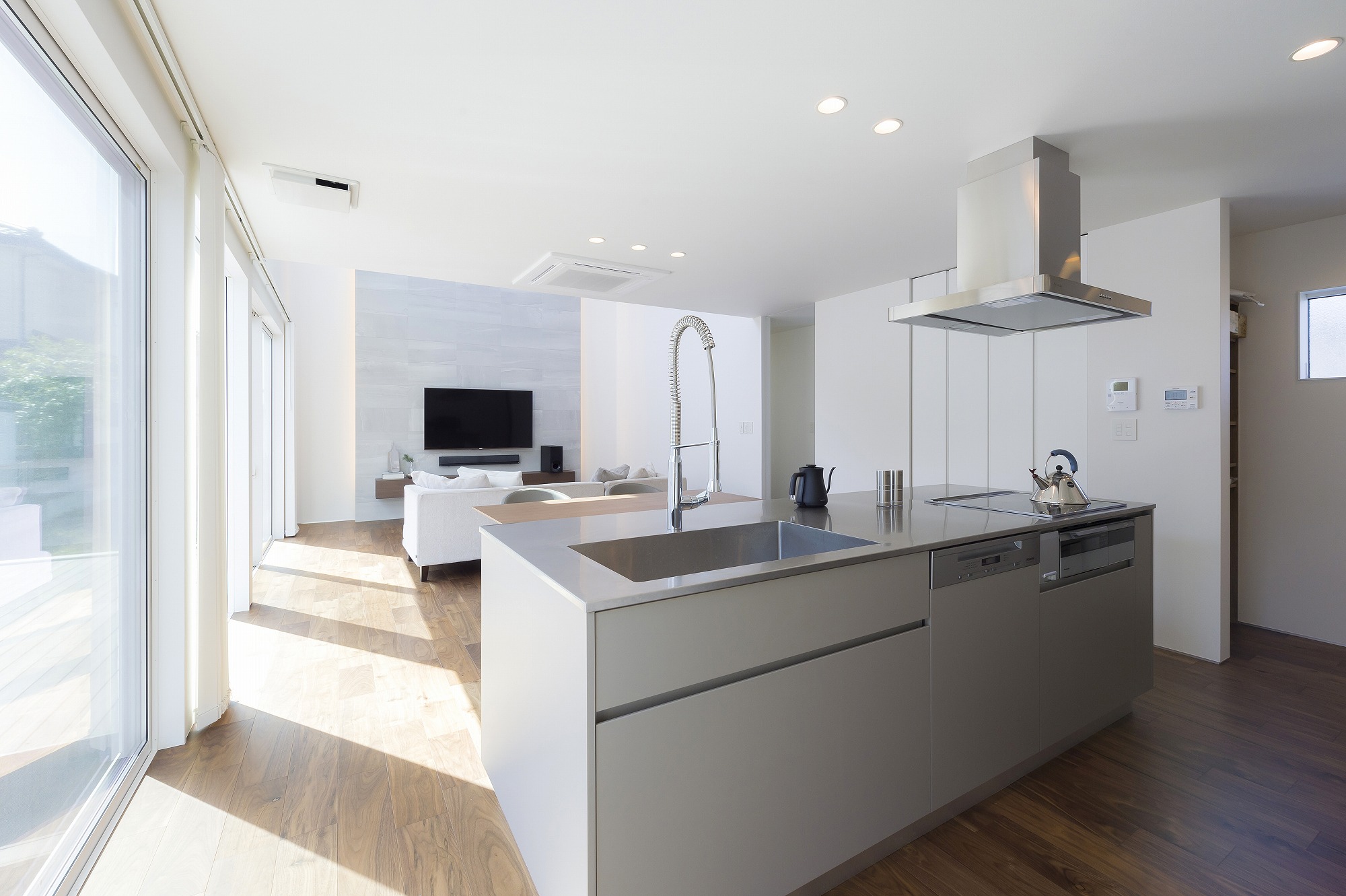 吹き抜けのあるグレイッシュな家