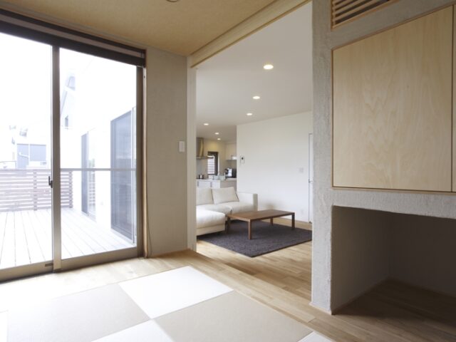 リビングから少しずらした和室は、来客時や子供のお昼寝に。