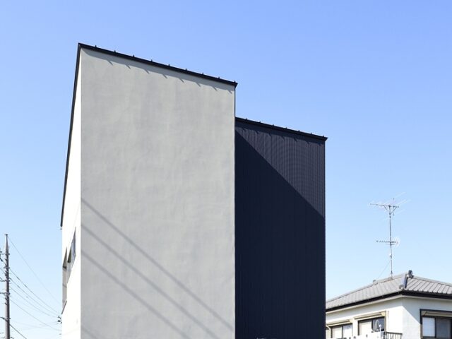 東側から見た外観(上部)。窓を排除し極力シンプルにこだわったデザインは、一瞬住宅なのか、疑うほど。