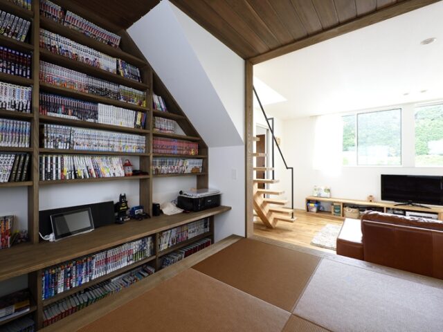 趣味のマンガは、LDKに隣接する和室の壁一面に収納し、