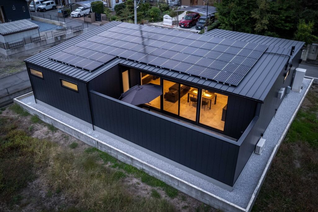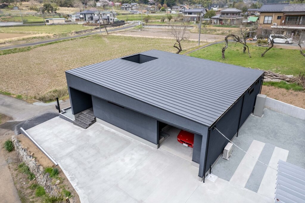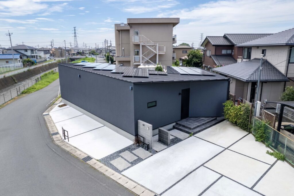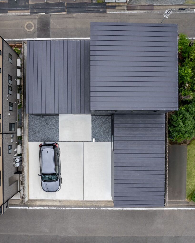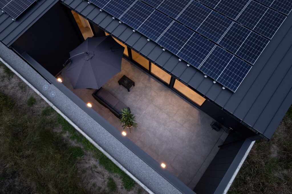 敷地形状を最大限に活かした中庭テラスを囲む平屋の家