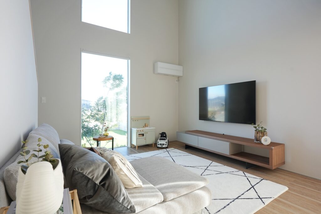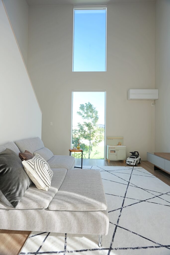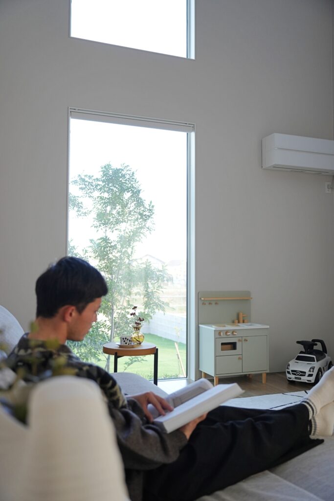 大開口のスリットが光を誘う開放感ある家