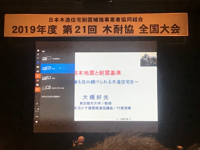その後は熊本地震と耐震基準(大地震後も住み続けられる木造住宅を)を東京都市大学、大橋教授より。