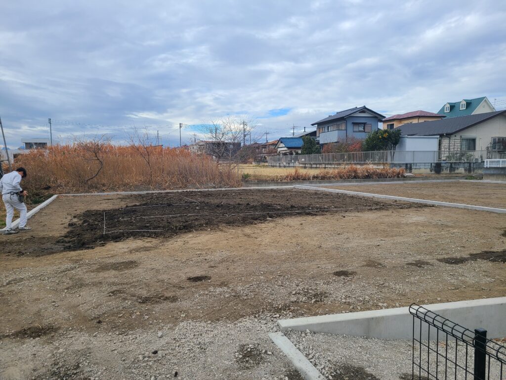 地鎮祭前に地縄を張り、建物の配置を確認しました。