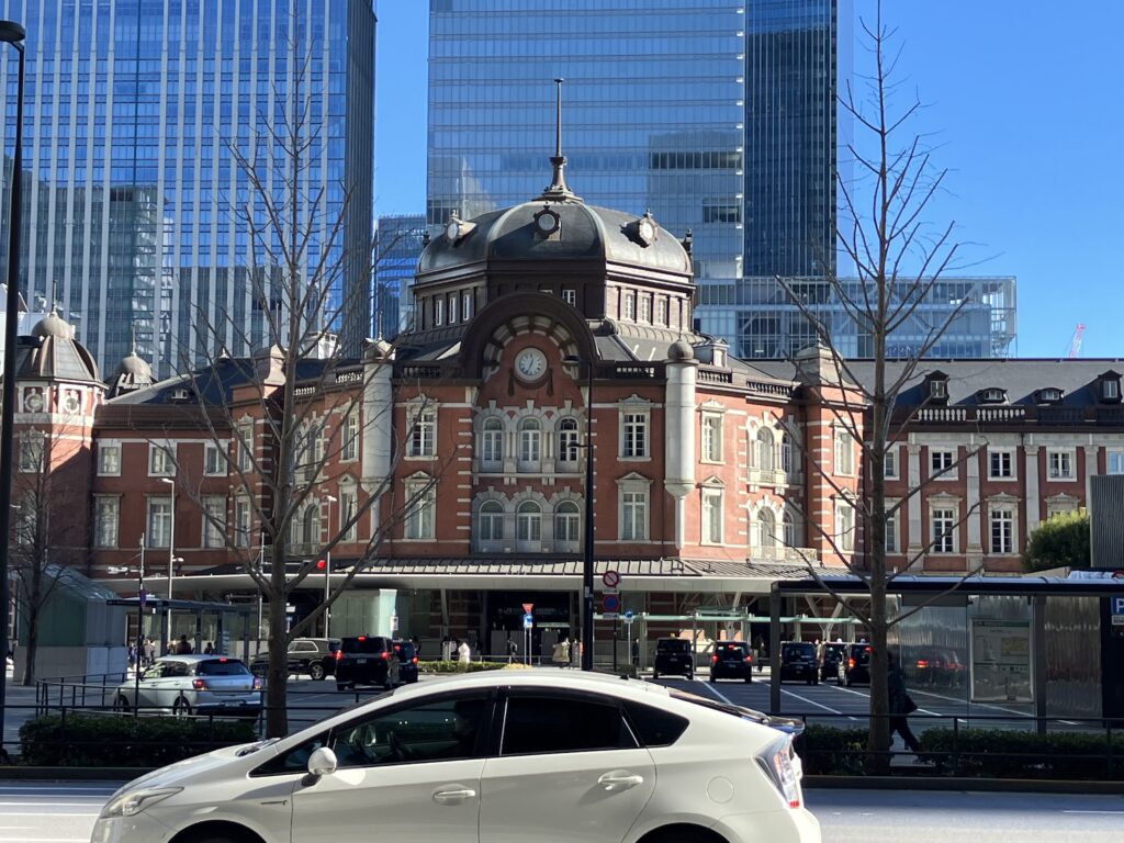 お天気にも恵まれ、青空に東京駅が映えていましたので、記念に写真を撮りました。