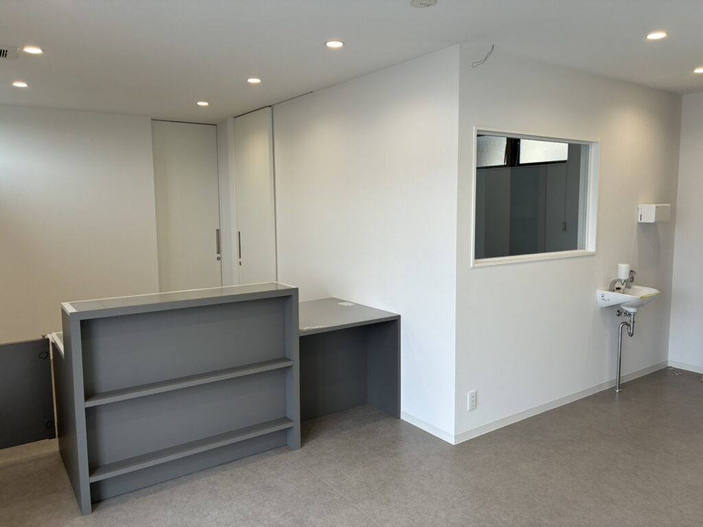 本日受付カウンターが設置が設置され、いよいよ完成が見えてきました!