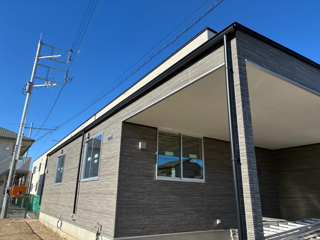 外装仕上げ工事も順調に進み外部足場払い完了!