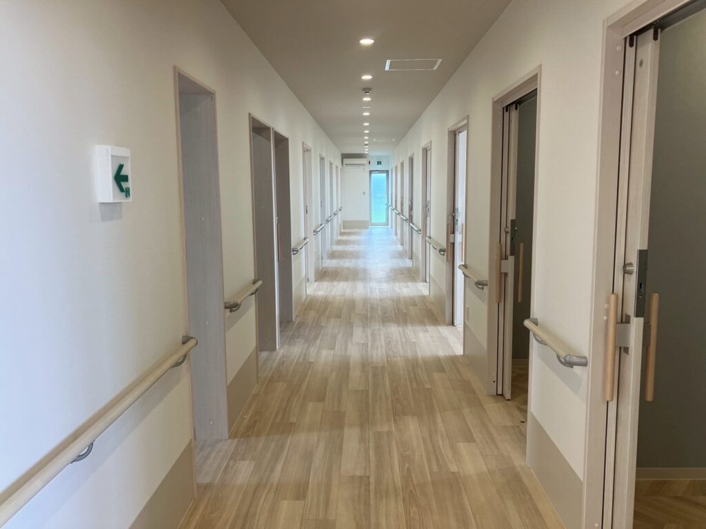 室内は自然光がたっぷり入る明るいリビング、車椅子対応のバリアフリー動線、そしてスタッフが見守りやすい配置など、細かな配慮を施しています。