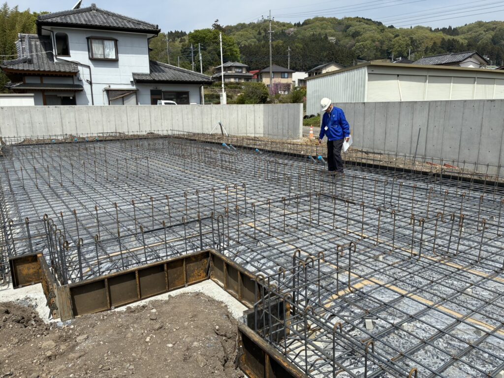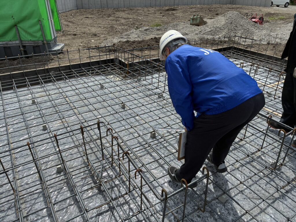 鉄筋の組み方や、地面との間に十分な距離が確保されているかなどを確認してもらい、