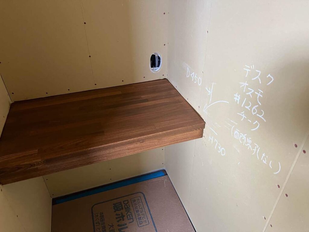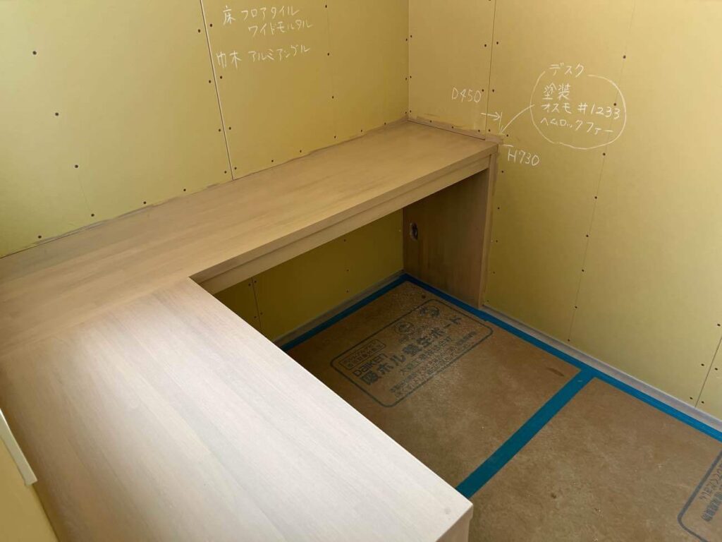 集成材の造作カウンターや階段の笠木の塗装が完了し、綺麗に仕上がっていました!