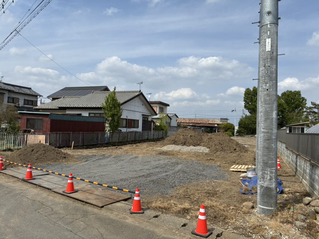 造成工事が進んでおり、敷地の境界や建物の配置、電線・電柱の有無、工事車両が通行可能かなどを確認し着工に備えます。