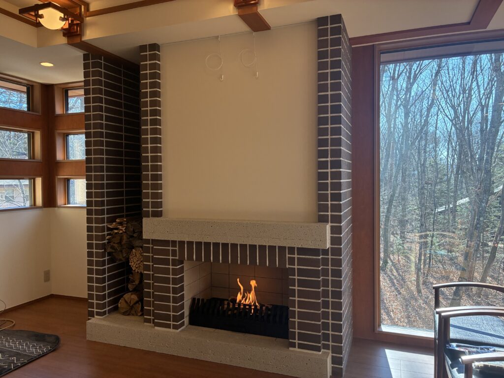 寒い地域なので暖炉を採用しており、本日薪を燃やしてみました。